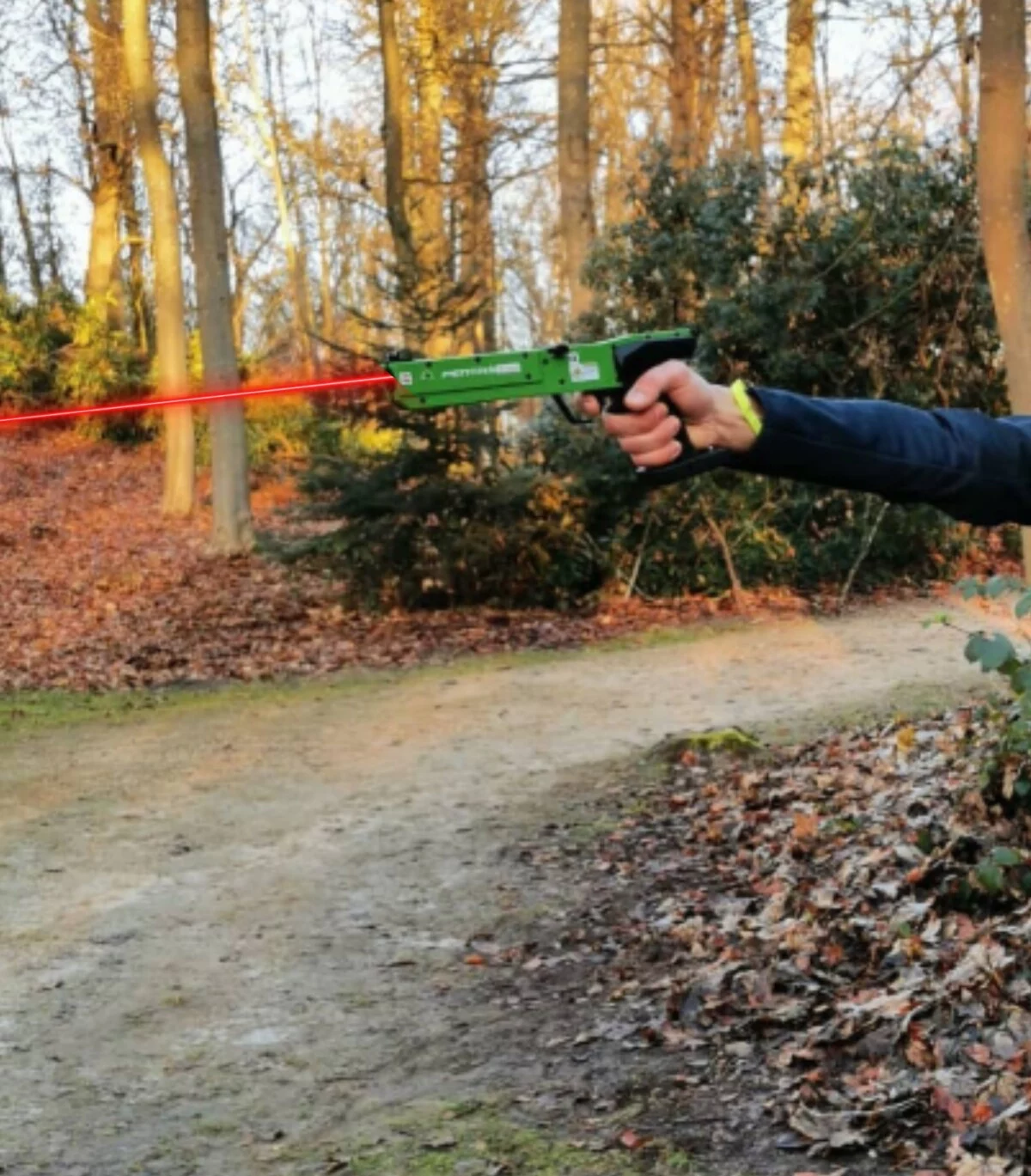 Side view of young cyclist riding e-bike along trail in forest having concentrated expression on his face. Biker in helmet, glasses and sportswear speeding down on electric bicycle. Speed motion, blur -
